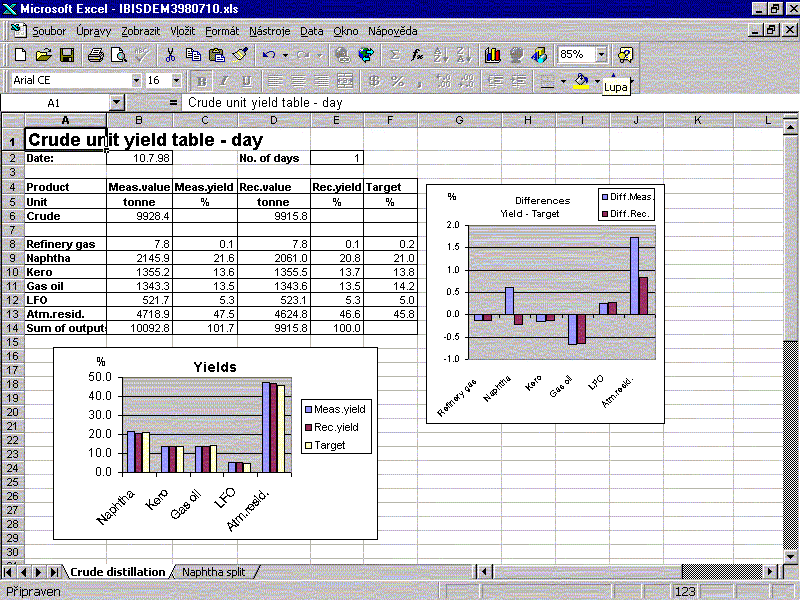 IBIS has its own optimized database for comfortable managing of data files. It also contains a generator of tables and reports for efficient presentation of results (yield tables, surveys of expedition of products, inventories of products and intermediate products etc.).