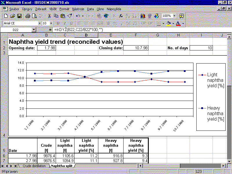 Trend of naphtha yields generated in Excel Full size of the trend |